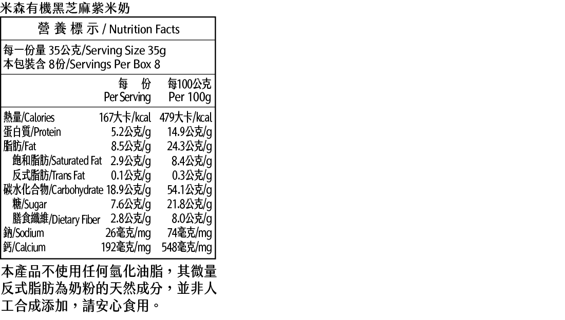 【米森】有機黑芝麻紫米奶(35gx8包/盒)