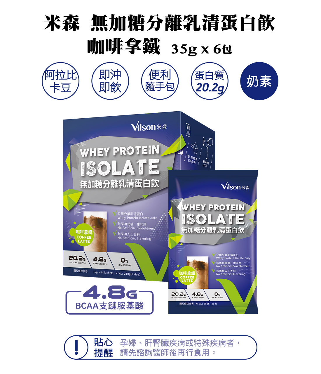 無加糖分離乳清蛋白飲-咖啡拿鐵(35gx6包/盒)