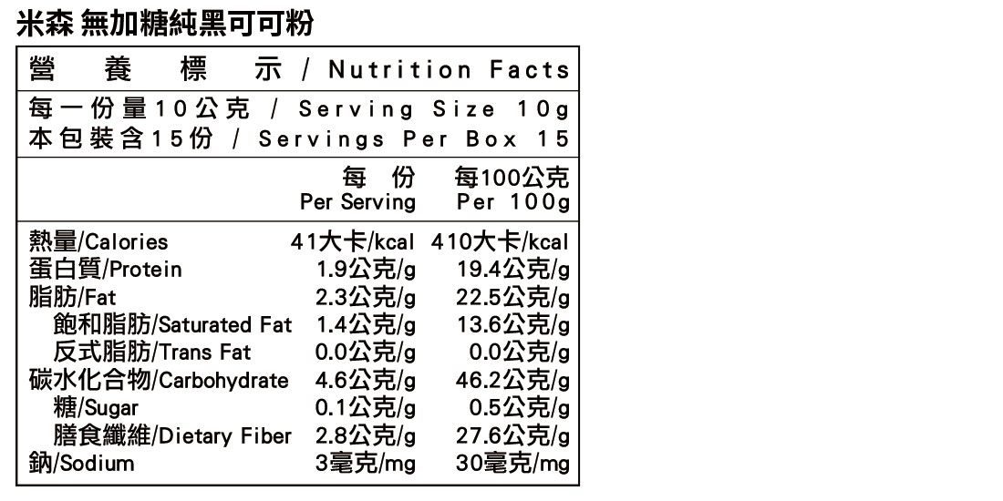 【米森】無加糖純黑可可粉(150g/盒)