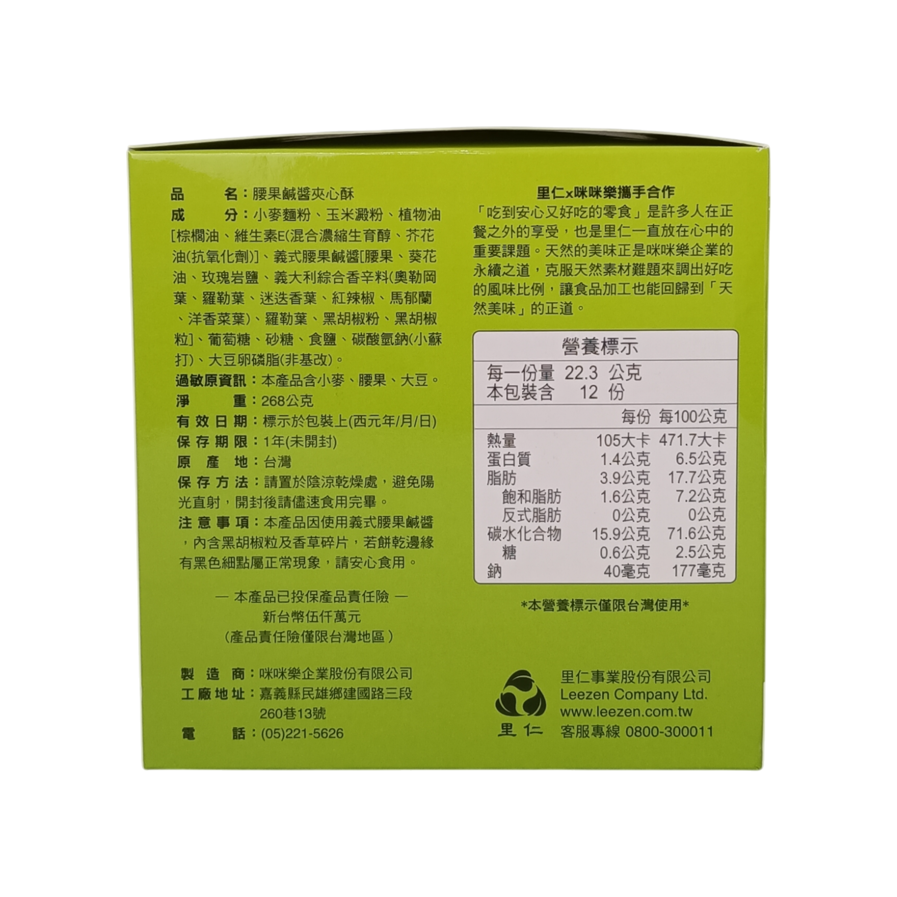 【里仁】腰果鹹醬夾心酥 268g