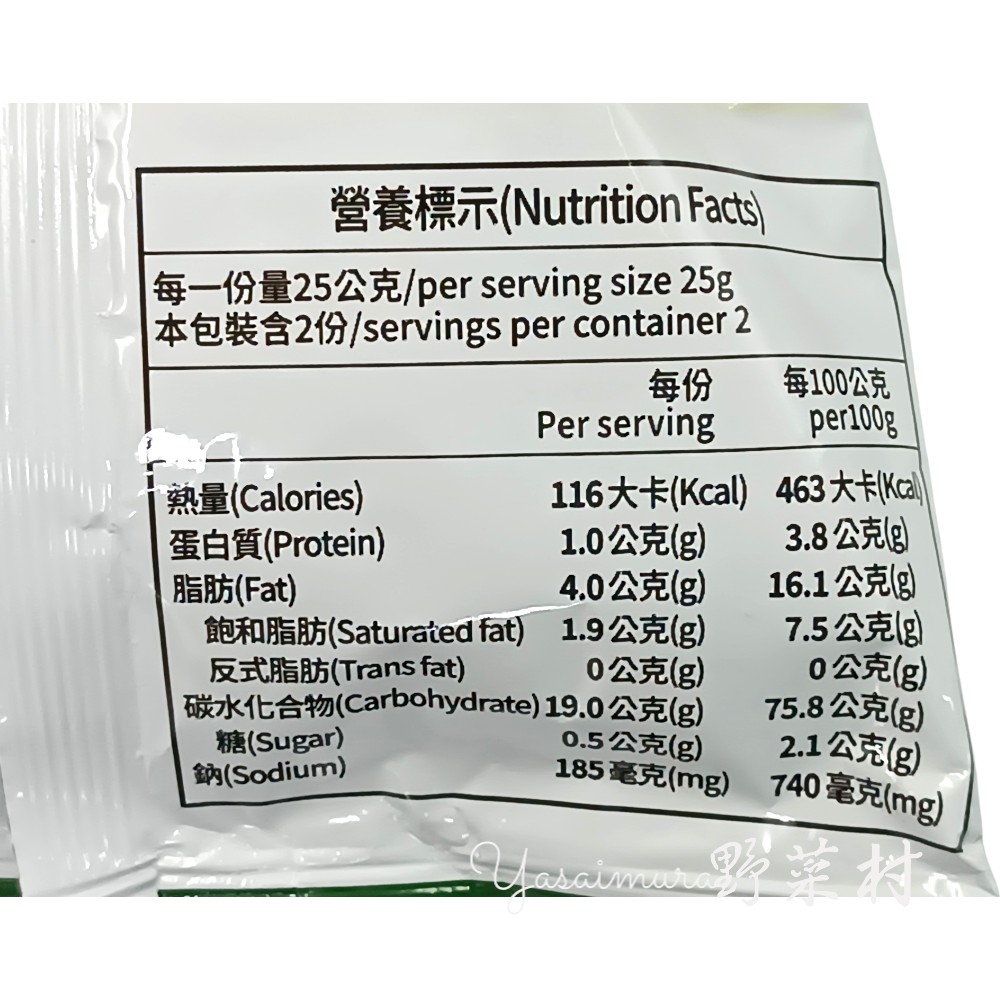 成份:馬鈴薯塊(澱粉、細粒)、食鹽、糖、非氫化棕櫚油。