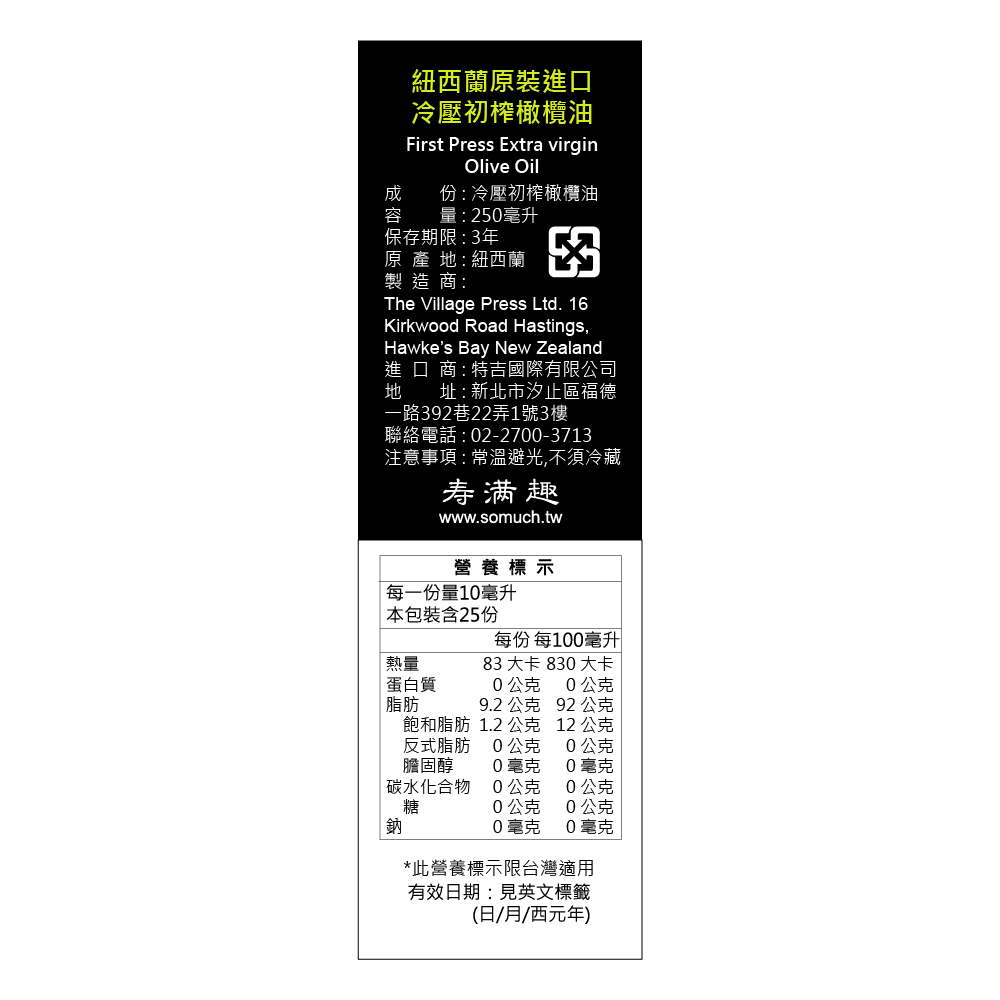 【Village Press】頂級冷壓初榨橄欖油250ml